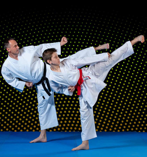 Our adult martial arts classes emphasize improving fitness, confidence, and practical self-defense.